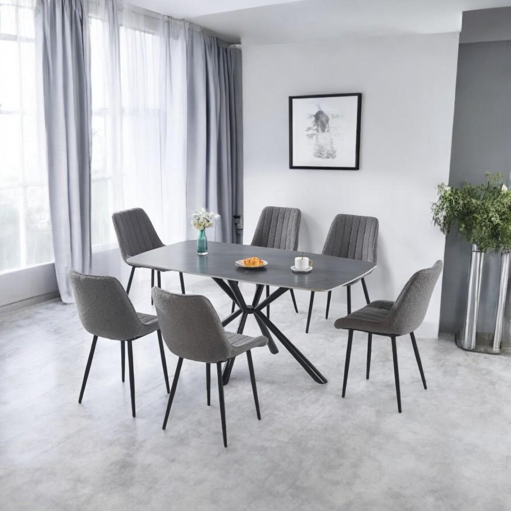 طاولة طعام سطح سيراميك رمادي 6 كراسي : طاولة طعام سطح سيراميك رمادي مع 6 كراسي تتميز بتصميم عصري وأنيق، حيث يوفر السيراميك الأبيض سطحًا سهل التنظ...