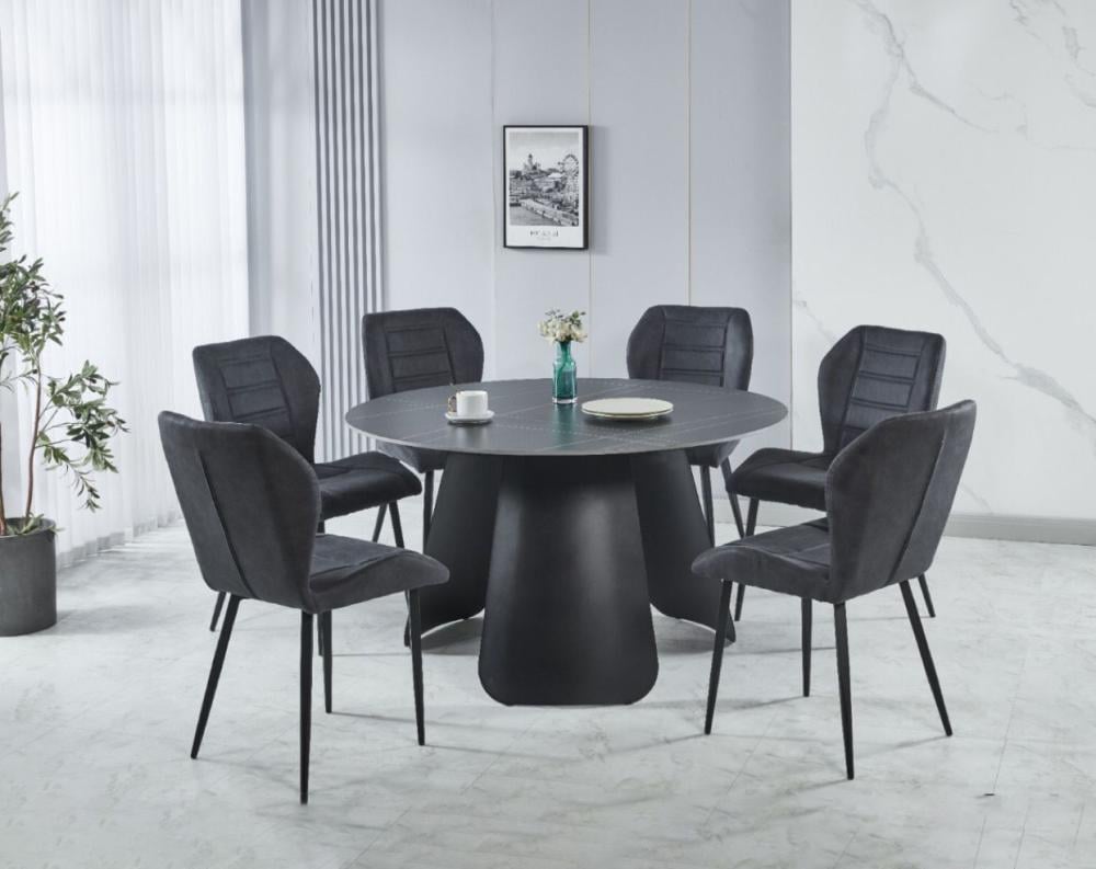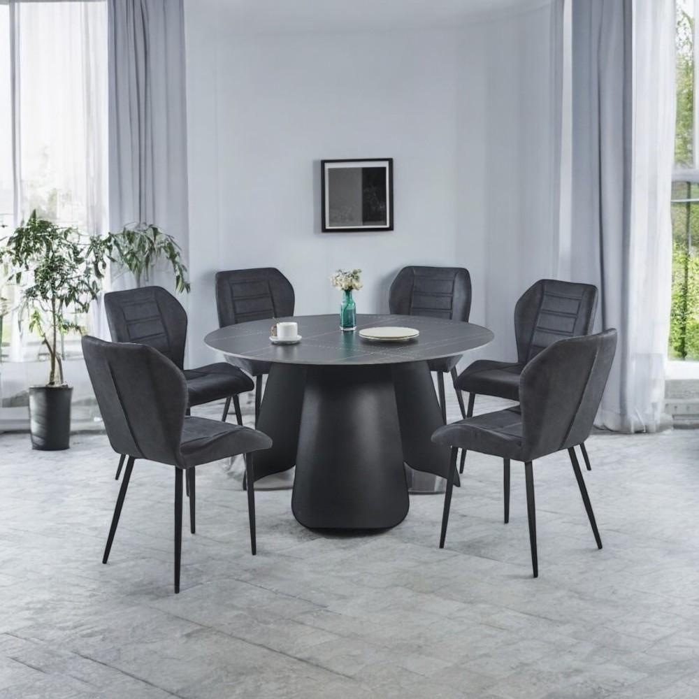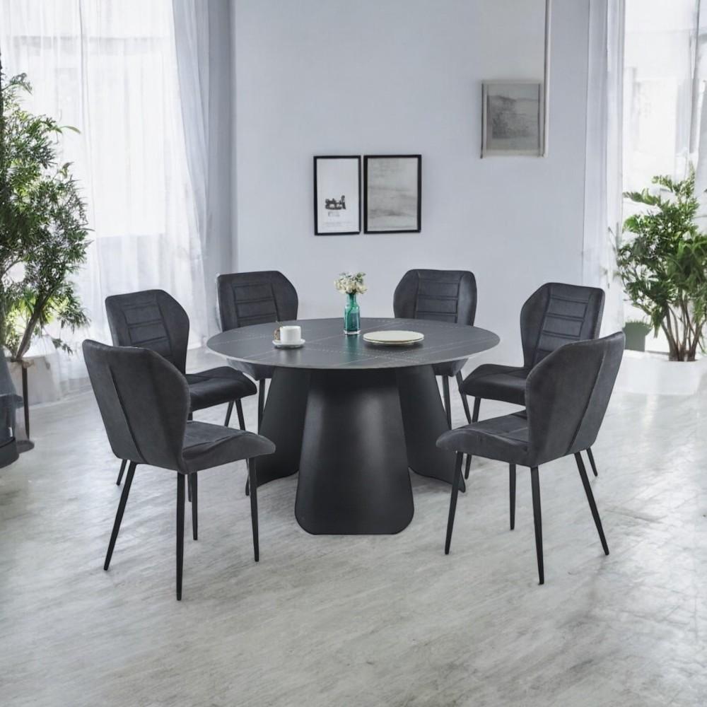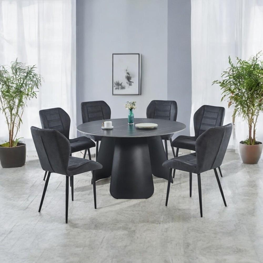 المزيدطاولة طعام سيراميك دائري مع 6 كراسي لون أسود :