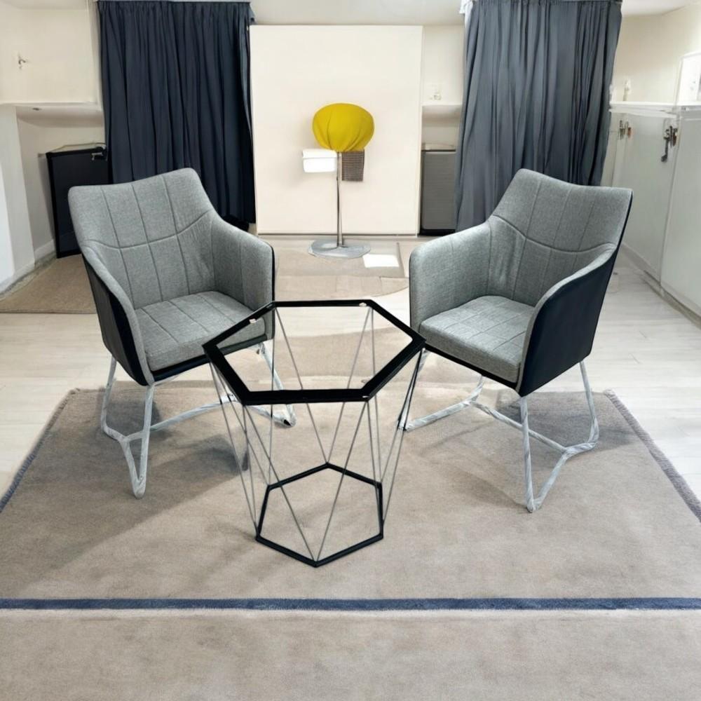 طقم كرسيين وطاوله يجسد الأناقة المعاصرة والراحة الفائقة و يتكون من كراسي مريحة ذات تصميم مميز وطاولة بتفاصيل عصرية و مما يجعله إضافة مثالية لأي مساحة ...