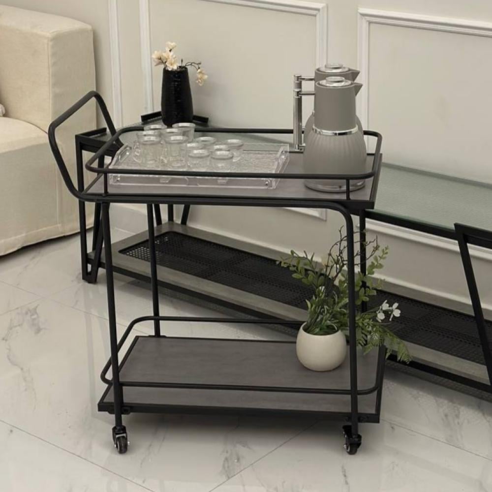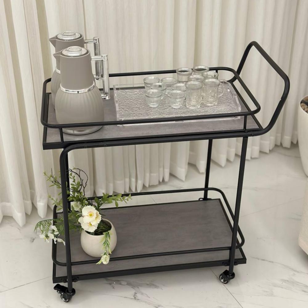عربية تقديم ضيافة دورين مصنوعة من الخشب بلون رمادي أنيق تضيف لمسة دفء وجمال إلى ديكور منزلك. تتميز بتصميم فاخر يجمع بين العملية والفخامة، مع لمسات عصرية تجعلها مثالية لتقديم الضيافة في المناسبات أو الاستخدام اليومي.