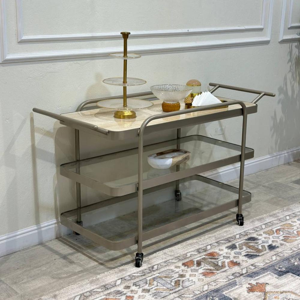 عربية بديل رخام مع زجاج 3 دور لون شمباني :اللون : شمباني المقاسات : الارتفاع : 70 سم الطول : 124 سم العرض : 50 سم ...