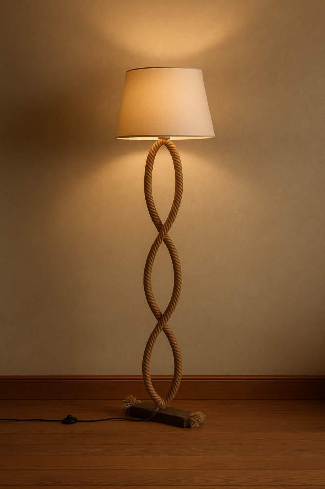 مصباح أرضي بحبل بتصميم أنيق وفريد يضفي لمسة عصرية وطبيعية على أي مساحة.