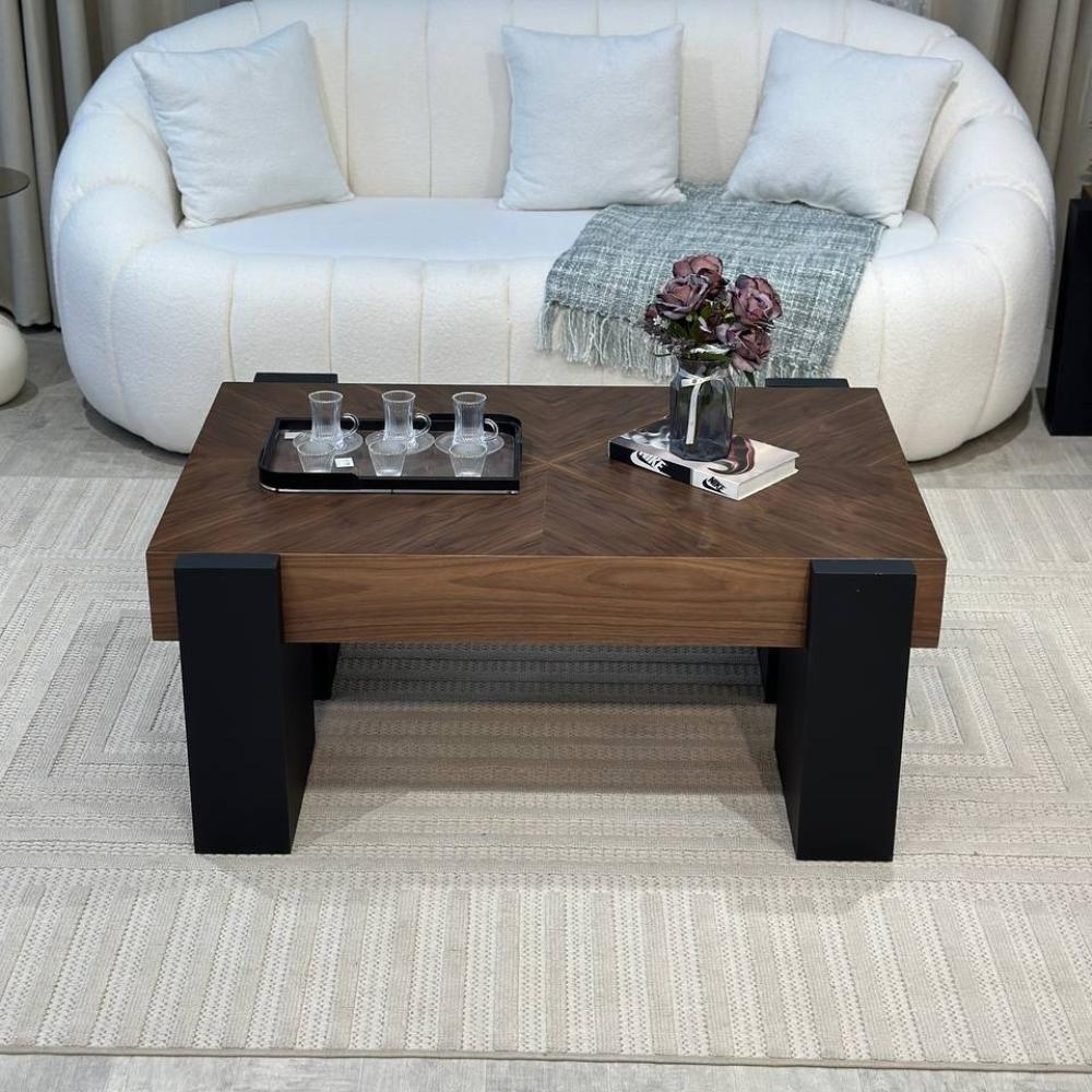 طاولة ضيافة أنيقة بسطح مصنوع من قشرة جوز الهند الطبيعية، تضيف لمسة دافئة وفريدة للمساحة مع تصميم يجمع بين الجمال والوظيفة.